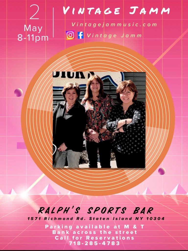 - Sat May 2 Vintage Jamm Trio Ralph’s Sports Bar, Staten Island NY 7-10pm